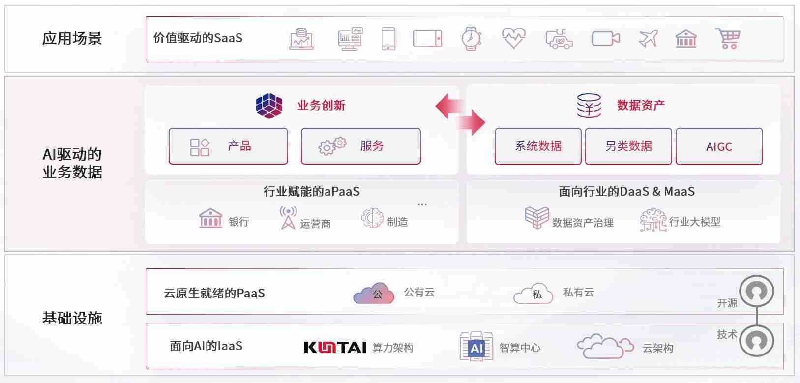 数字时代,,,围绕企业数字化转型的关键要素,,,壹号娱乐数码开创性的提出数云融合战略和技术体系框架,,,着力在云原生、、数字原生、、、、AI原生和信创产业上架构产品和服务能力,,,为处在不同数字化转型阶段的快消零售、、汽车、、、金融、、、医疗、、政企、、教育、、、、运营商等行业客户提供泛在的敏捷IT能力和融合的数据驱动能力,,,,构建跨界融合创新的数字业务场景和新业务模式,,助力企业级客户建立面向未来的核心能力和竞争优势,,全面推动社会的数字化、、智能化转型升级。。。。
